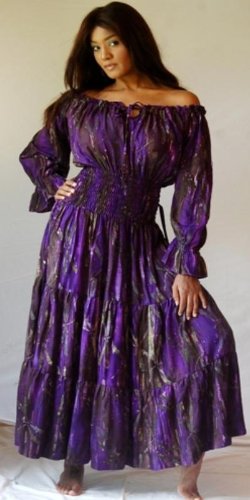 The Detailed Description of PURPLE DRESS PEASANT SMOCKED MAXI HIPPIE - FITS (ONE SIZE) - L XL 1X 2X - U969S LOTUSTRADERSFeatures