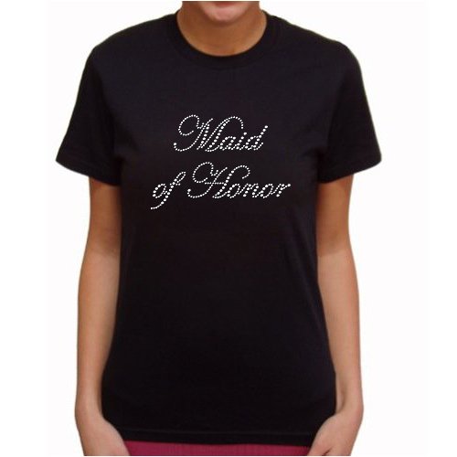 The Detailed Description of Maid Of Honor Rhinestone Girly T-shirt, Large, Black