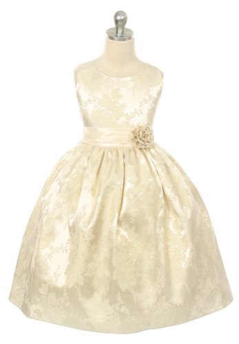 - New Sleeveless Ivory Jacquard Flower Girl Dress