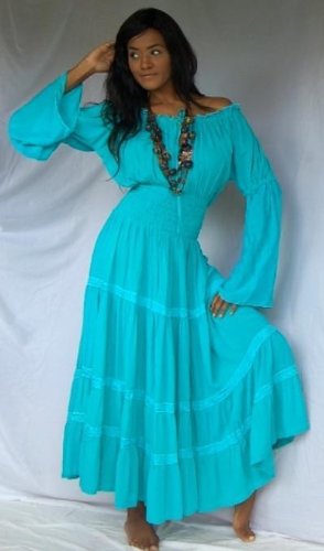 The Detailed Description of AQUA DRESS MAXI PEASANT HIPPIE - FITS - 2X 3X 4X - U454S LOTUSTRADERSFeatures