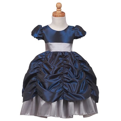 A beautiful princess style dress for your little girl from Lito. This navy blue taffeta dress features a silver underskirt and sash at waist. Perfect for that Christmas, special occasion or even dress up. Proudly made in the USA. Navy princess taffeta dress with Silver accents
